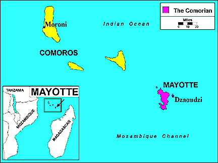 The Comorians (also known as the Mauri or the Mahorais) live on the tropical island of Mayotte. Located in the Indian Ocean between Madagascar and Mozambique, Africa, Mayotte is one of the four largest islands of the Comoros chain.