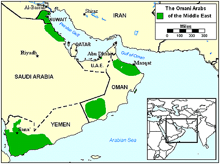 Arabs have inhabited the territory that is now Oman for thousands of years. In the eighteenth century an alliance of traders and rulers transformed Muscat (Oman's capital) into the leading port of the Persian Gulf. Today, this small desert country, which lies in the southeastern corner of the Arabian Peninsula, is home to 1.3 million Omani Arab.